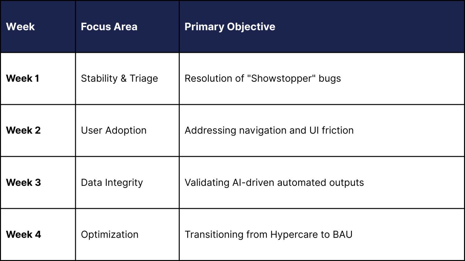 According to industry benchmarks, organizations that implement a structured 4-week hypercare plan see a 45% reduction in support tickets by the second month compared to those that take a reactive approach.The ROI Case for Internal Certification Programs